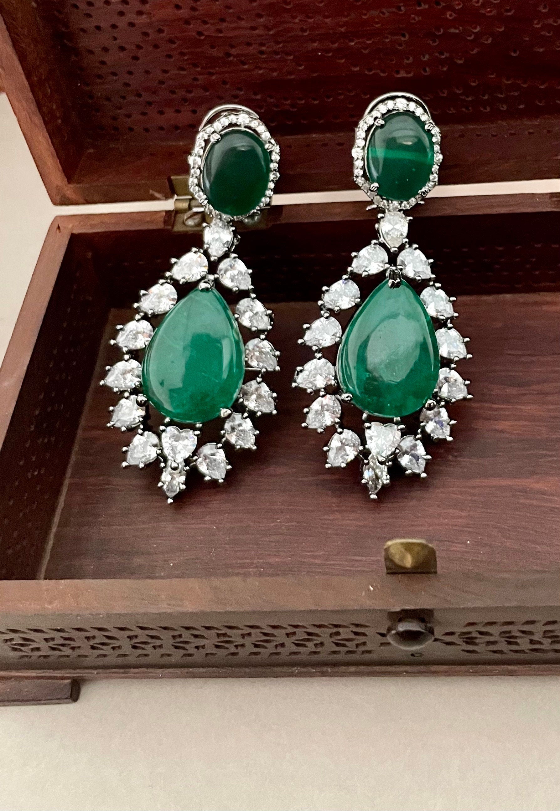 Green Diamond Earrings/Victorian Earrings/Indian Jewelry/Indian Earrings/CZ Earrings/American Diamond/Cocktail Earrings/Wedding Jewelry
