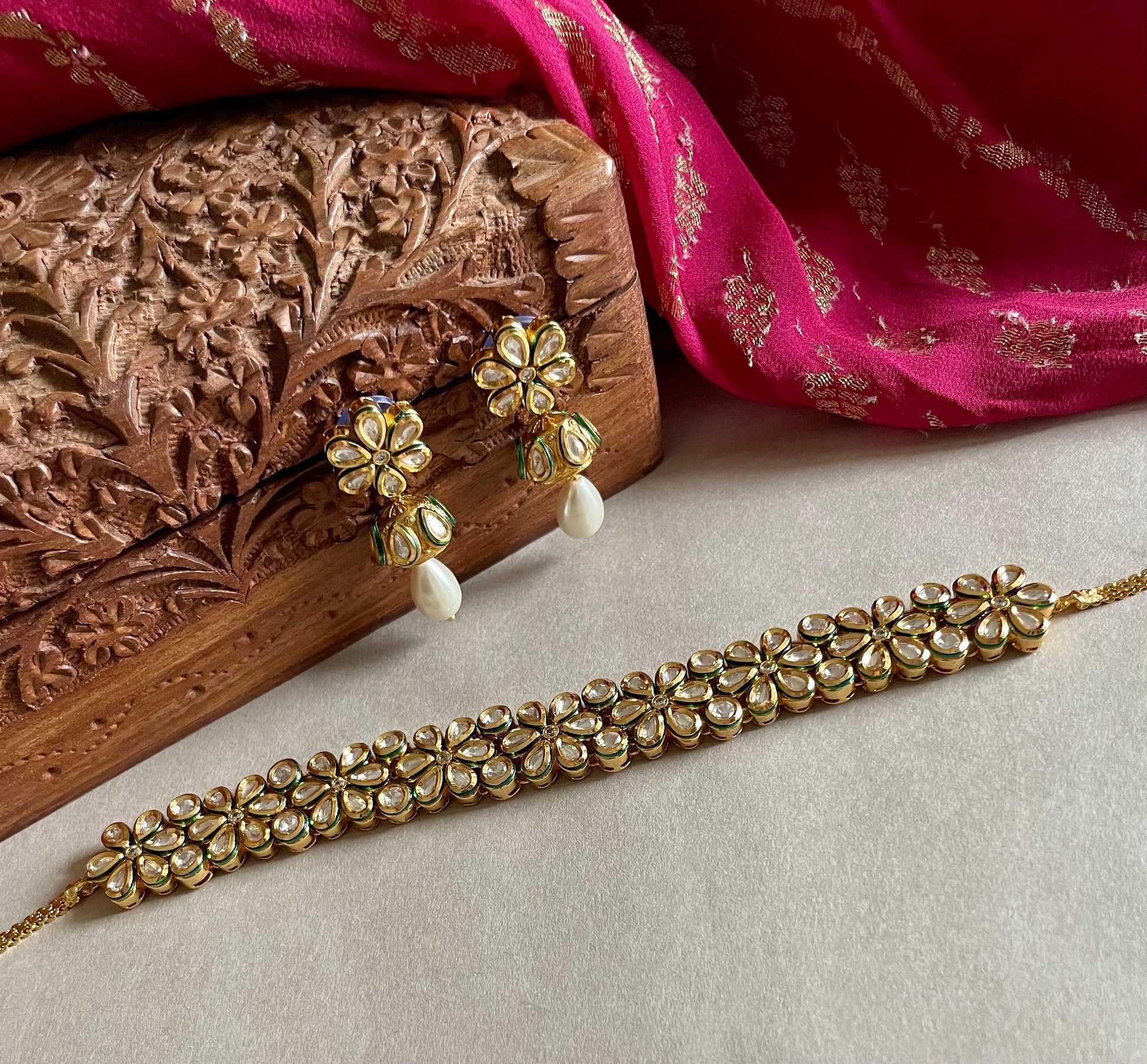 Kundan Choker Jewelry Set/Gold Choker Set/Next to Real Necklace Set/Kundan Jhumkis/Indian Jewelry Set/Bollywood Jewelry